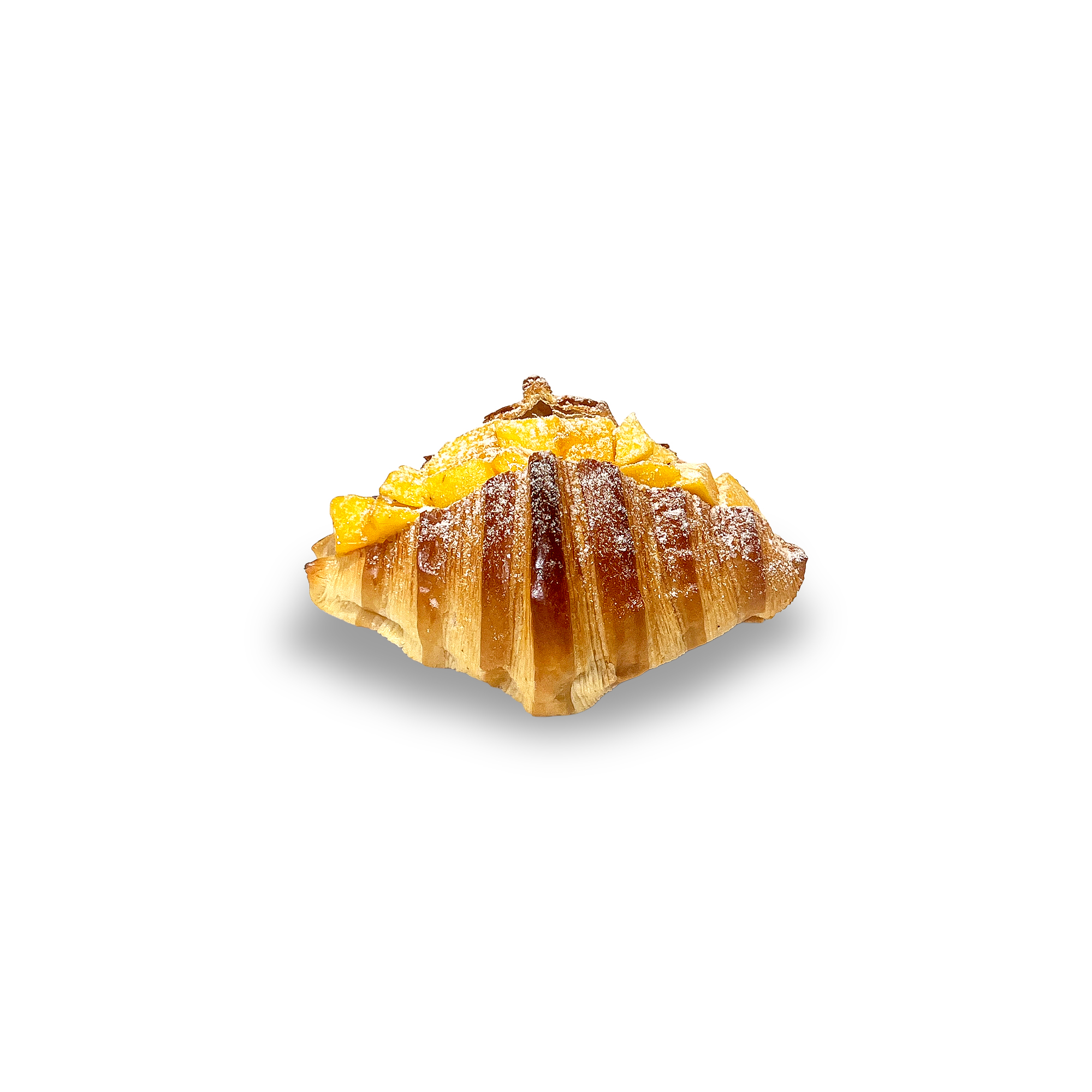 Croissant Kem Xoài là sự kết hợp đầy mới mẻ giữa lớp vỏ bánh ngàn lớp giòn rụm và nhân kem xoài tươi mát. Chiếc bánh nổi bật với phần nhân kem mịn màng, mang vị ngọt thanh và hương thơm đặc trưng của xoài chín tự nhiên. Điểm nhấn của bánh là những miếng xoài tươi được xếp khéo léo trên lớp kem, không chỉ tạo nên vẻ ngoài hấp dẫn mà còn thêm độ mọng nước cho mỗi lần nếm.