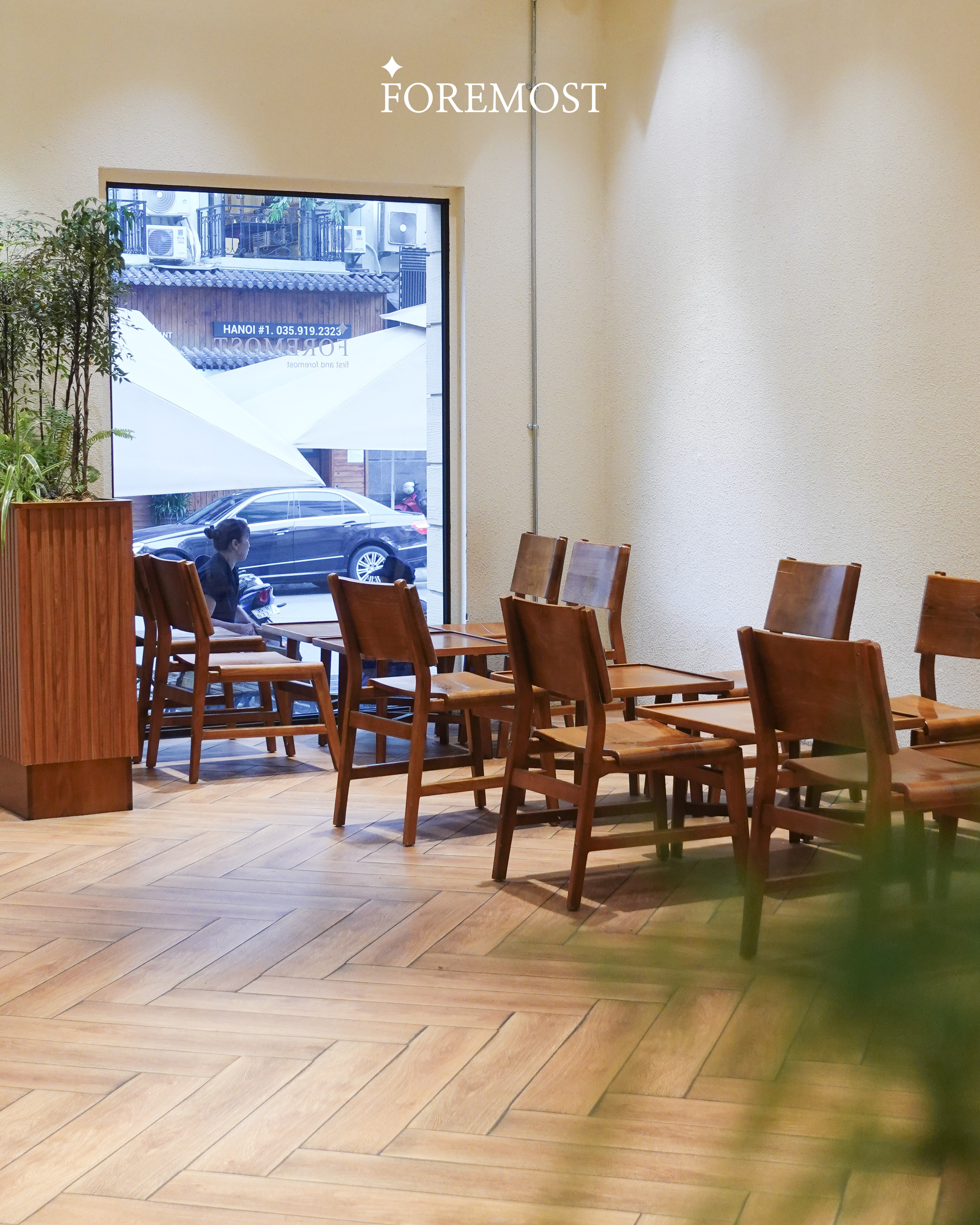 Sự tận tâm của Foremost không chỉ nằm ở hương vị bánh, mà còn được gửi gắm vào những tiểu tiết nhỏ nhất mà bạn chạm vào. Từ bề mặt bàn gỗ tự nhiên cho đến lớp đệm êm ái nâng đỡ bạn trong suốt nhiều giờ làm việc hay đọc sách. Các dãy bàn luôn được sắp xếp với một khoảng cách vừa vặn - không ồn ào, không xô bồ. Dù bạn ghé quán một mình để tìm sự tập trung, hay đi cùng người thương cho một buổi hẹn hò thảnh thơi, Foremost luôn giữ sẵn cho bạn sự thoải mái và tự do tuyệt đối.